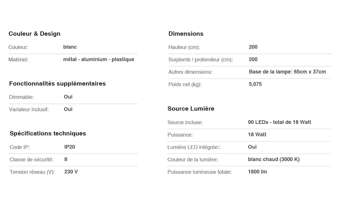 - Couleur : blanc